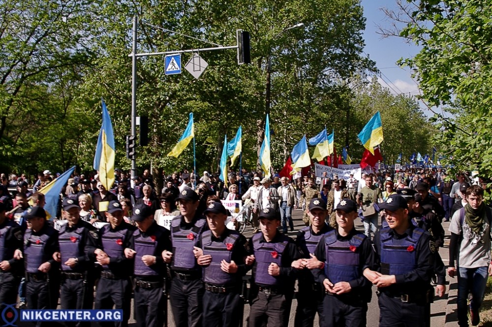 Во время шествия к колонне пытались присоединиться херсонские ультрас, выкрикивавшие оскорбительные для сторонников левого движения лозунги. Но сотрудники полиции оттеснили радикалов от участников шествия.