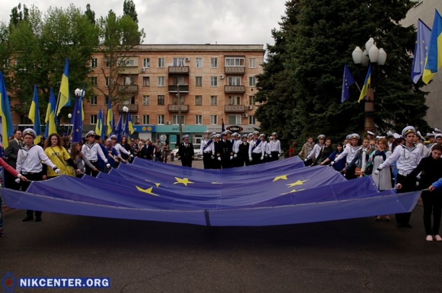 В Херсоне по случаю безвиза с ЕС подняли флаги и провели шествие. ФОТОРЕПОРТАЖ
