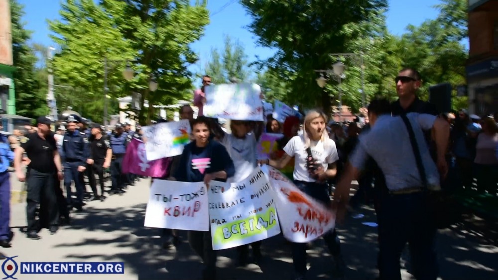 Прошедший в Херсоне марш пытались сорвать представители праворадикальных организаций. Некоторые из них вели себя крайне агрессивно, вырывали у активистов плакаты и флаги, пытались справоцировать драку. За что были задержан сотрудниками полиции.