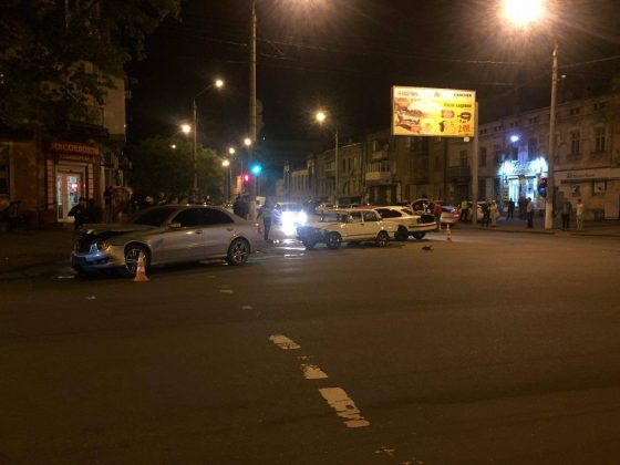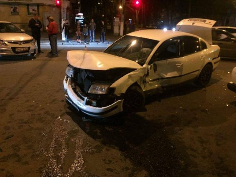 Вчера, 17 мая, около 23 часов на перекрестке улиц Богдана Хмельницкого и Мясоедовской столкнулись четыре автомобиля – «Мерседес», «Хюндай», «Фольксваген» и «ВАЗ-2107».