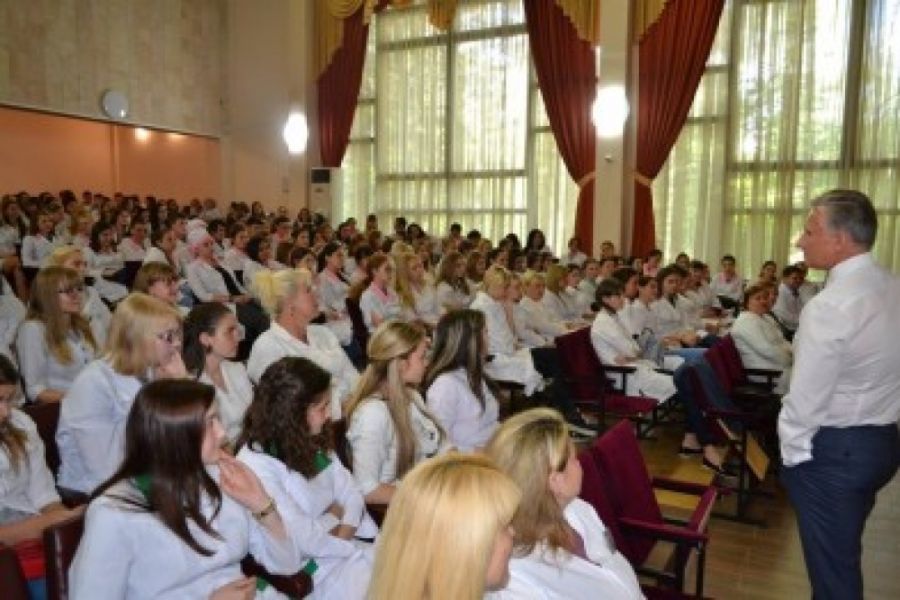 Во время встречи со студентами Роман Илык особое внимание уделил обсуждению перспектив будущих медиков в работе, отметив роль медработников в обществе.