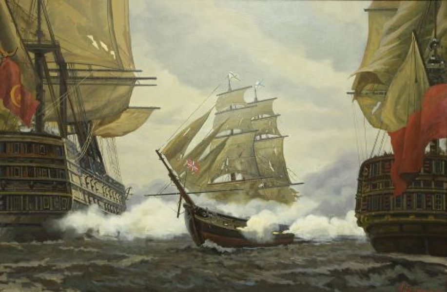 Как известно, чтобы спасти русские корабли-разведчики, бриг «Меркурий» принял на себя бой с двумя сильнейшими кораблями турецкого флота. Благодаря умелому маневрированию и действиям капитана Казарского, бриг уцелел в сражении, а турецкие корабли, целясь в быстро уходящий бриг «Меркурий», поражали друг друга.