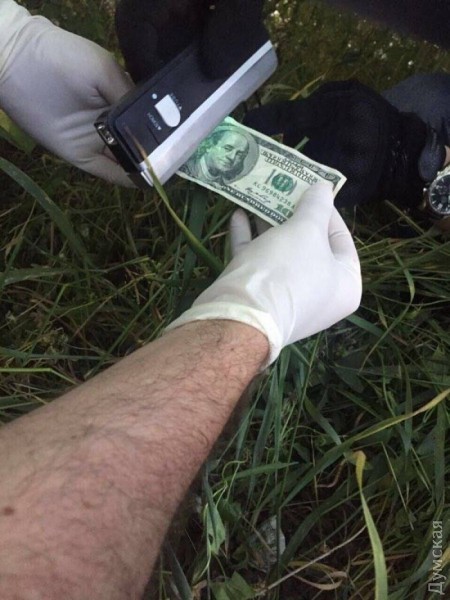 Сотрудники прокуратуры и СБУ задержали в Одессе полицейского при получении взятки в размере 500 долларов США.