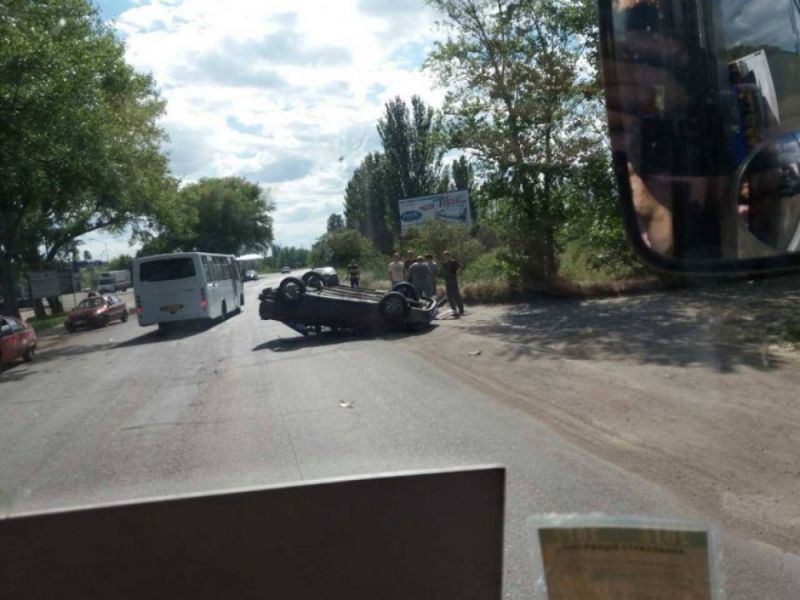 При въезде в Николаев столкнулись две иномарки: одну из них перевернуло на крышу