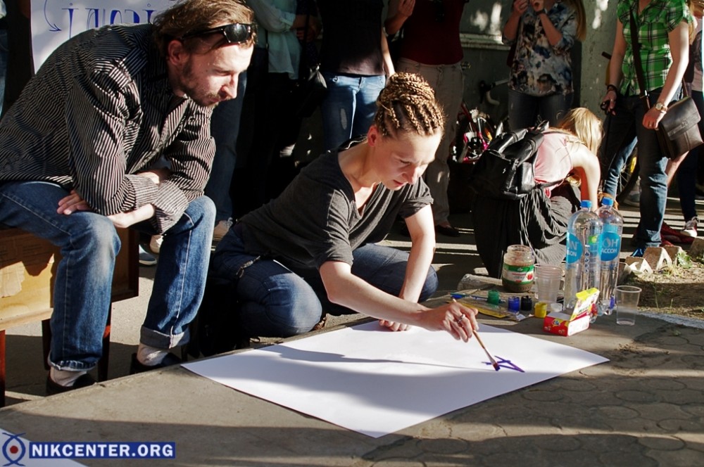 Херсонские деятели культуры и активисты протестовали против продажи здания, в котором находится культурный центр «Херсон Арт-Хаб». ФОТО