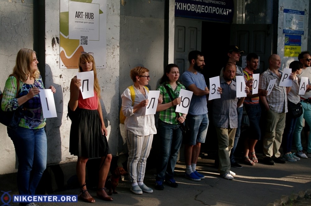 Акцию протеста против намерения Херсонского облсовета продать находящееся в коммунальной собственности здание бывшего кинотеатра "Иллюзион" провели в Херсоне деятели культуры и активисты.