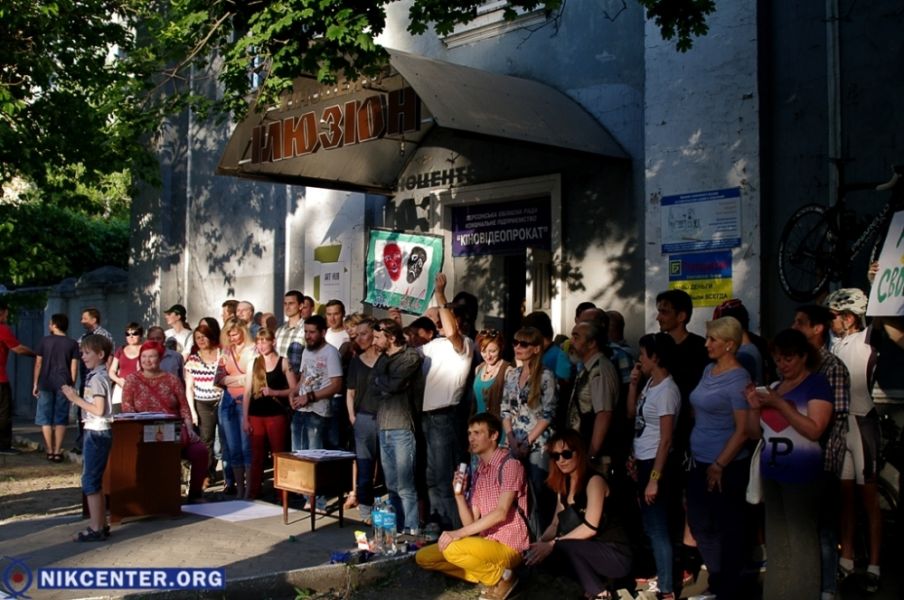 Акцию протеста против намерения Херсонского облсовета продать находящееся в коммунальной собственности здание бывшего кинотеатра "Иллюзион" провели в Херсоне деятели культуры и активисты.
