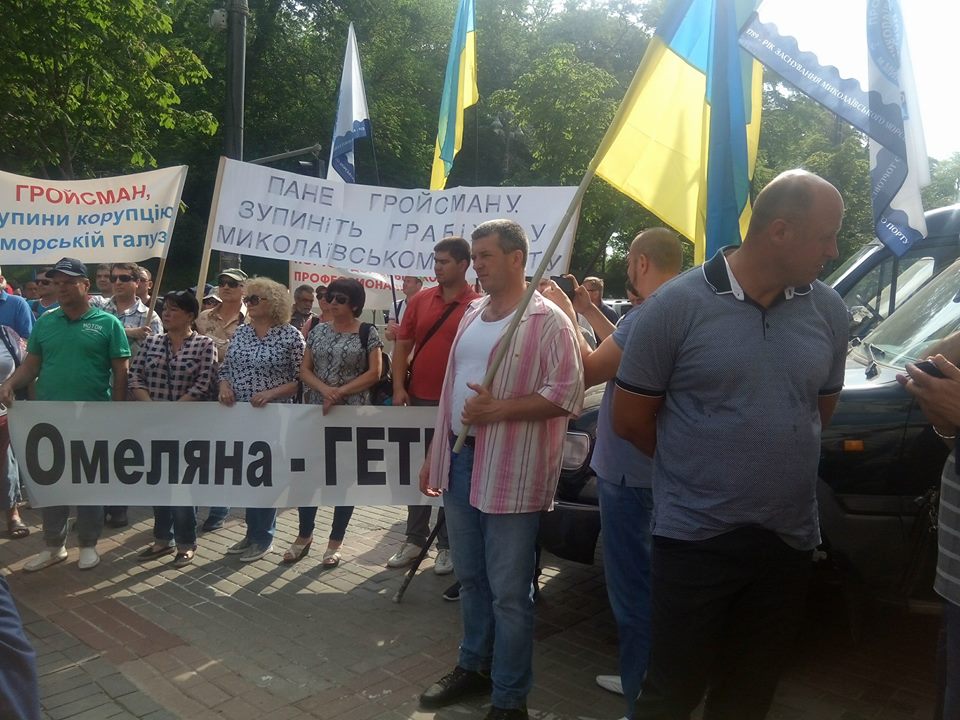 Сегодня, 7 июля, под зданием Кабинета Министров Украины николаевские портовики провели акцию протеста, требуя отставки министра инфраструктуры Владимира Омеляна. По мнению протестующих, именно при попустительстве государственного чиновника в порту последнее время царит беспорядок.