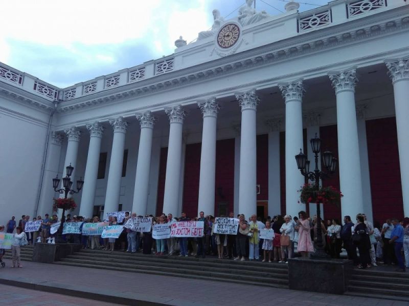 Параллельно с пленарным заседанием под стенами мэрии начался митинг инвесторов первой очереди жилого комплекса на 16–й станции Большого Фонтана.