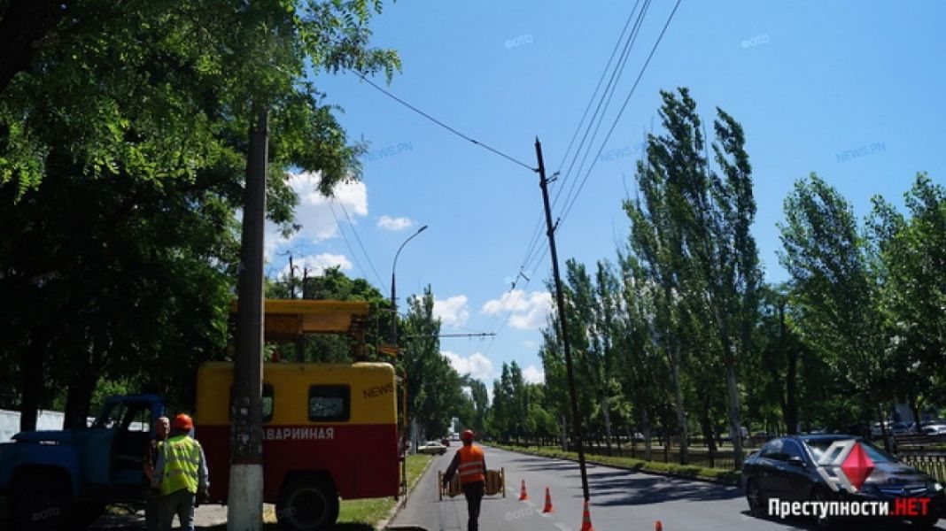 В пятницу, 16 июня, в Николаеве на проспекте Центральном силовая опора линии контактных сетей упала на проезжающую маршрутку.