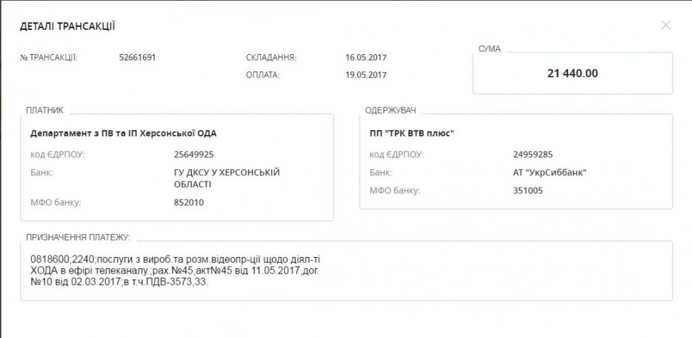 На такое совпадение, как комплиментарный характер интервью, которое провела с Андреем Гордеевым журналистка Татьяна Каменская, и проплаты из областного бюджета на расчетный счет «ВТВ плюс» «за производство и размещение видеопродукции, касающейся деятельности ХОГА, в эфире телеканала», обратил внимание депутат Херсонского облсовета Александр Шумей.