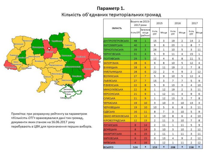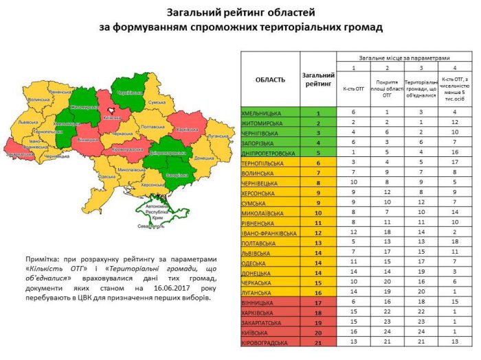 — К сведению — рейтинги областей за формированием способных территориальных общин. Разработанный Минрегион по четырем параметрам мониторинга. Представил сегодня его председателям ОГА, представителям региональной власти и органам местного самоуправления, — написал Геннадий Зубко.