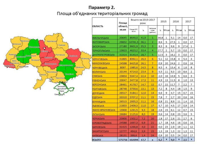 Так, согласно опубликованным данным, Николаевская область по площади объединенных территориальных общин занимает седьмое место среди 24 областей Украины, однако, по количетву ОТО Николаевщина оказалась на десятом месте, расположившись между Черновицкой и Ровенской областями.