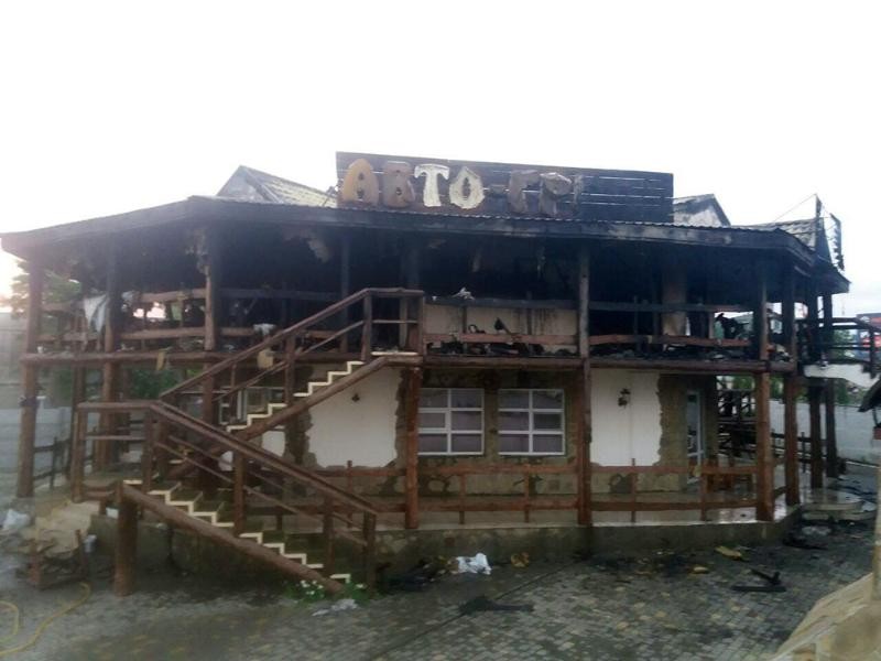 Так как расстояние от места расположения подразделения ГСЧС до места происшествия составляет около 35 километров, первыми в борьбу с огнем вступили отделения пожарной охраны. Тушение пожара осложнялось высокой пожарной нагрузкой помещений: декоративное оформление кафе выполнено из дерева, использован тростник», – отметили в ГСЧС.