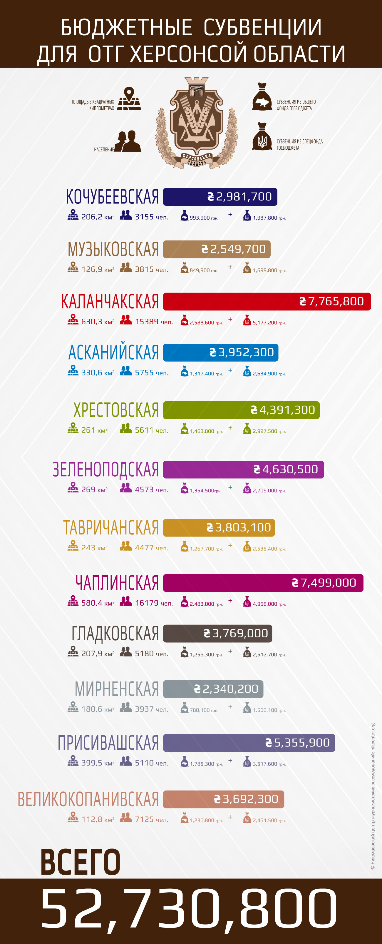 ОТГ Херсонской области получат из госбюджета 52,1 млн. грн. (инфографика)