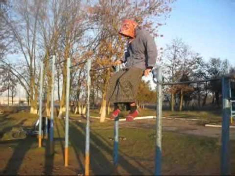 Спортсмены переоделись в бабушек и отправились на тренировку в парк «Победа», где и показали различные трюки на старых турниках, установленных на пляже «Стрелка». Ироничный ролик активисты опубликовали на «Ютубе».