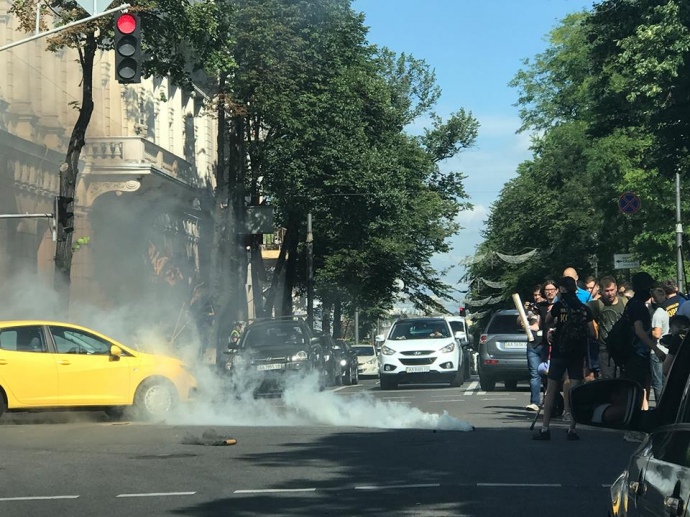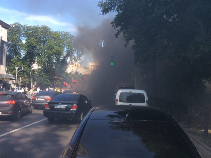 Утром в четверг, 13 июля, под Верховной Радой протестующие начали бросать на дорогу дымовые шашки, – пишет «Украинская правда».