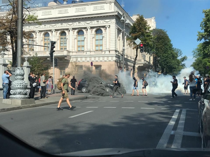 Утром в четверг, 13 июля, под Верховной Радой протестующие начали бросать на дорогу дымовые шашки, – пишет «Украинская правда».