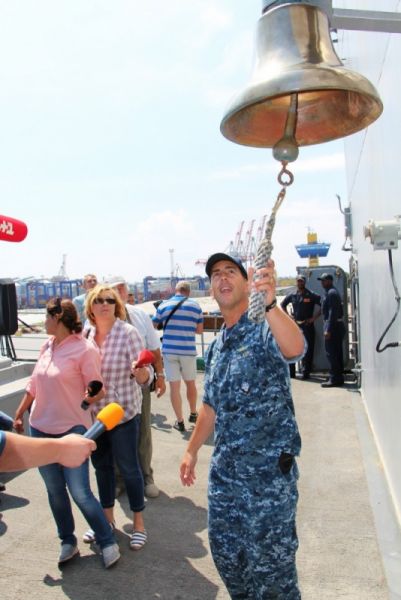 По существующей традиции первыми гостей на борту кораблей встретили их командиры. Они ознакомили представителей отечественных СМИ с историей создания кораблей, работой центра управления и навигации.