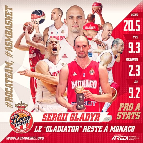 Это будет уже третий сезон украинца в составе монегасков. В последнем чемпионате Гладыр набирал в среднем 9,8 очка, 3,4 подбора и 2,4 передачи за матч.