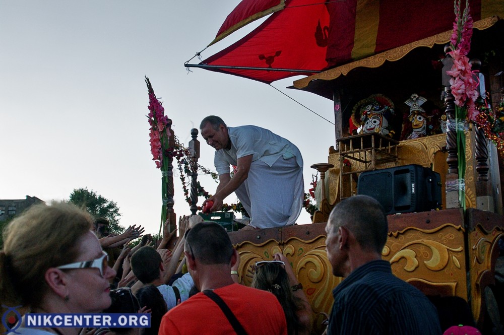 Основная часть фестиваля прошла на центральной городской набережной, куда активисты Общества Сознания Кришны привезли ритуальную колесницу «Ратха-Ятра».