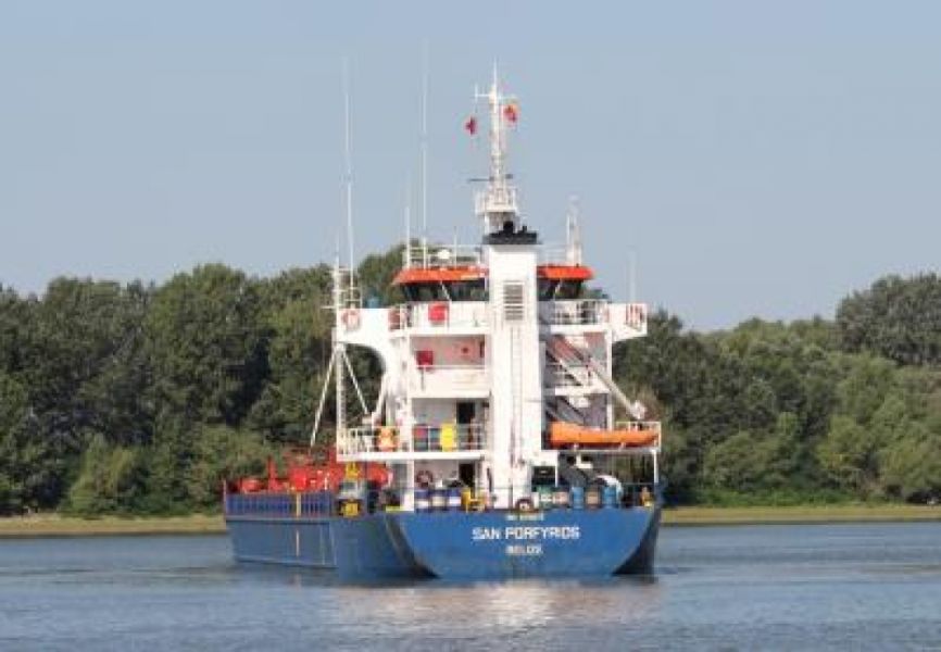 Теплоход San Porfyrios под флагом Белиза задержали, когда он следовал из Румынии в Грецию в украинских водах Дуная. Ранее оно называлось Sava Lake и ходило под флагом Панамы, но имело тот же ИМО.