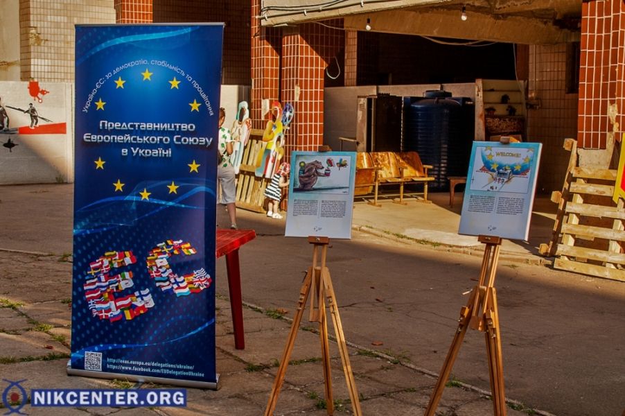 Выставка карикатур на тему отношений между ЕС и Украиной, викторина на знание фактов о Евросоюзе и концерт входили в программу, который прошел в Херсоне, в креативном пространстве Urban Cad в рамках информационной кампании «Строим Европу в Украине».