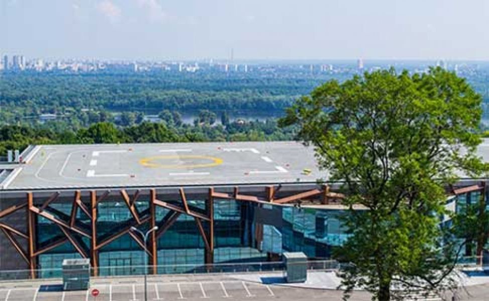 До этого, бывший тогда лидером партии «УДАР», ныне мэр Киева Виталий Кличко обжаловал в Окружном административном суде Киева строительство вертолетной площадки для президента Украины на столичных склонах Днепра, подав иск для признания противоправным и отмены решения Киевсовета от 28 декабря 2010 года № 525/5337, согласно которому ООО «Амадеус Ко» получило в аренду на 25 лет земельные участки площадью 2,18 га. Позже здание КВЦ неоднократно подвергалось обыскам правоохранителей.