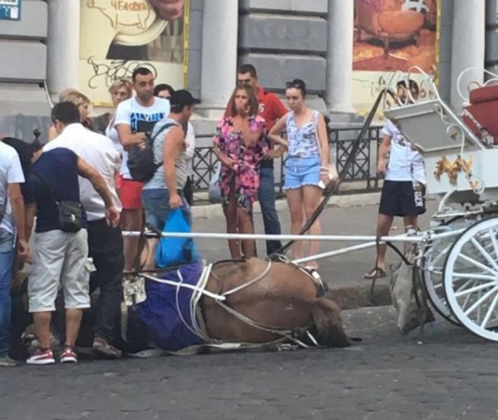 В Одессе открыли дело на владельцев коня, который от переутомления упал в обморок на улице
