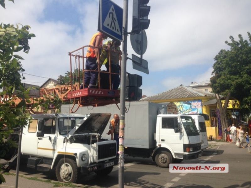 В Николаеве на Центральном проспекте заменяют обычные светофоры на светодиодные