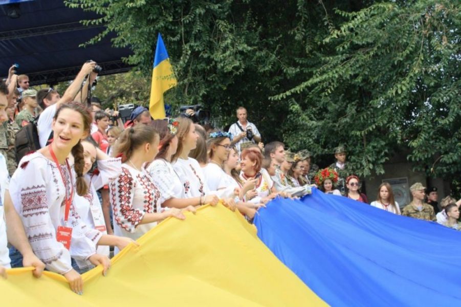 С 11.00 до 12.00 на Потемкинской лестнице будет развернут 26-метровый Государственный Флаг Украины.