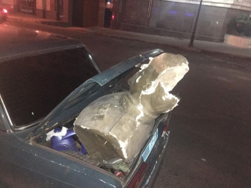 Прибывшие на место инцидента сотрудники полиции попытались вывезти скульптуру в багажнике служебного автомобиля.