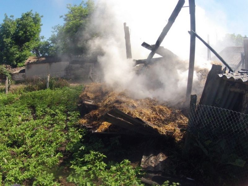 На тушение пожара был направлен дежурный караул в составе 4-х человек. По прибытию на место происшествия спасатели увидели, что горит хозяйственная постройка, в которой находилось около 700 тюков сена.