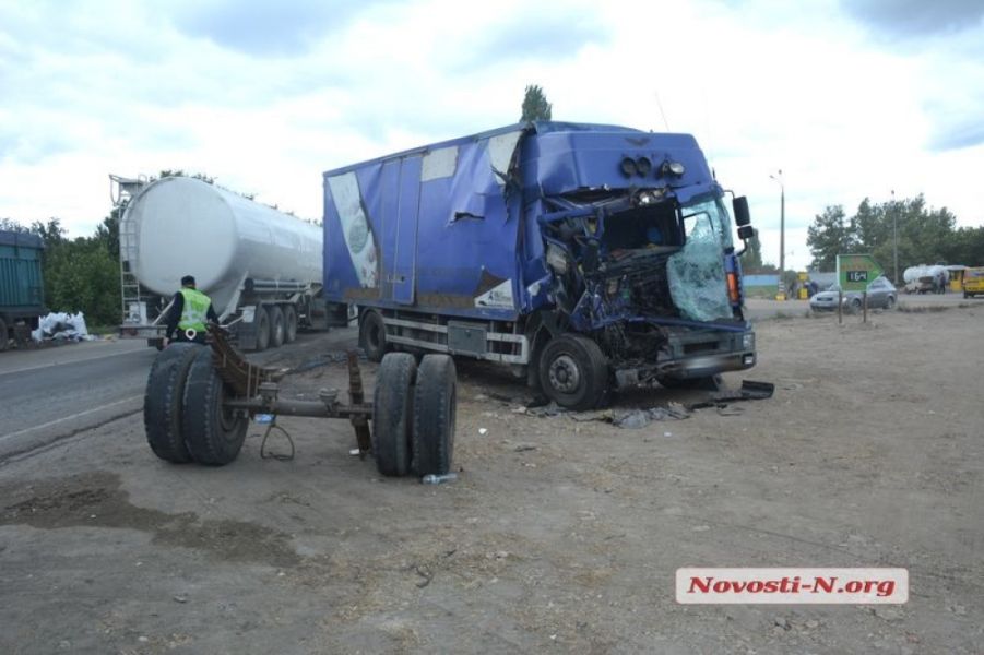 В результате аварии водитель «КамАЗа», врезавшегося в прицеп, погиб на месте происшествия. Также пострадал пассажир автомобиля «ДАФ», которого извлекали из автомобиля спасатели. С многочисленными травмами «скорая» доставила его в БСМП г. Николаева. О его состоянии ничего не известно.