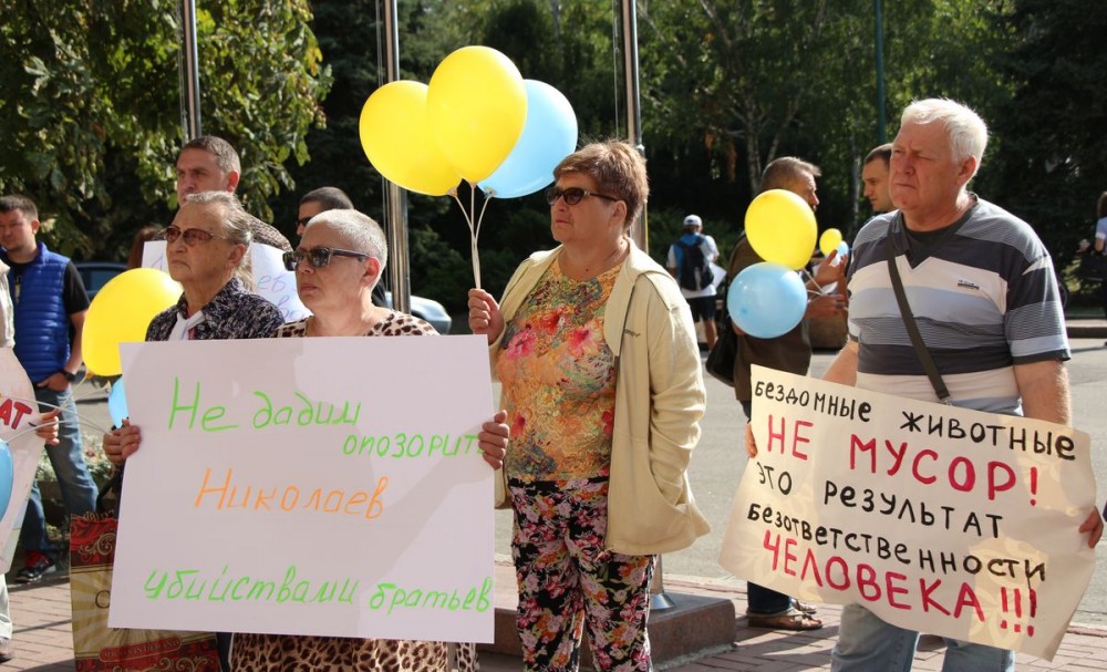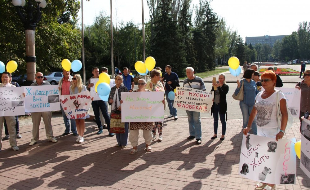 В четверг, 31 августа, николаевская организация зоозащитников «Зоофеникс» протестовала возле здания горсовета против эвтаназии бездомных животных.