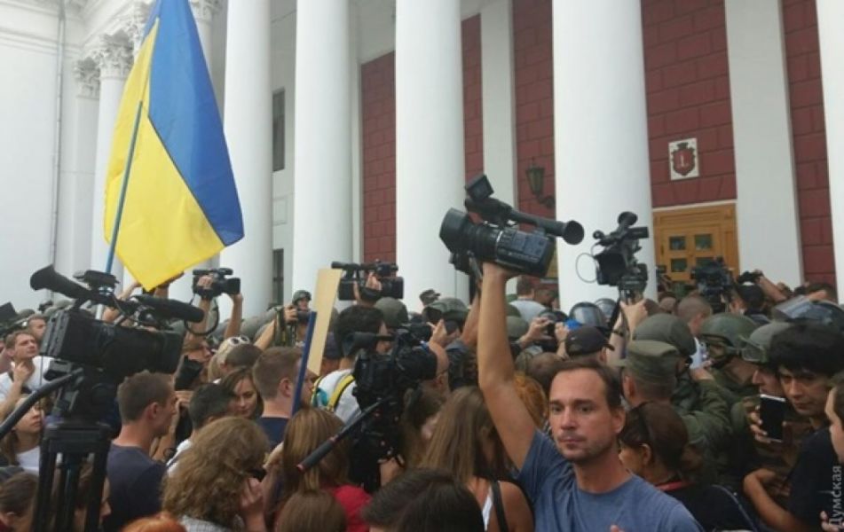 Участникам акции протеста в Одессе удалось войти в здание мэрии.