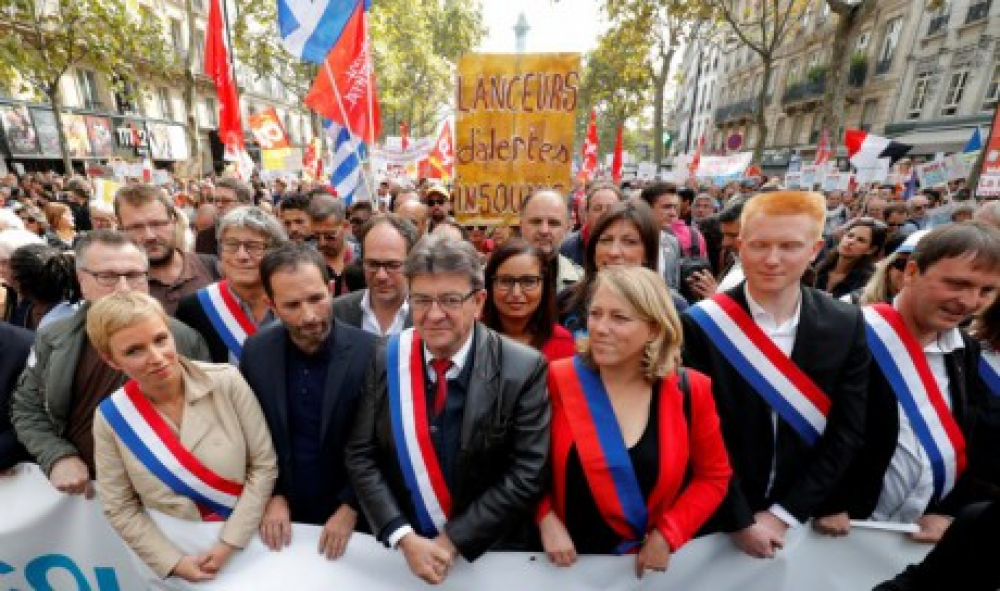 Акции протеста происходит на призыв лидера крайней левой партии "Непокоренная Франция" Жана-Люка Меланшона, который также принял участие в демонстрации. Демонстранты держат транспаранты с надписями «Макрон — президент богатых» и выкрикивают лозунги«Сопротивление! Сопротивление!» и «Нет — социальному госперевороту».