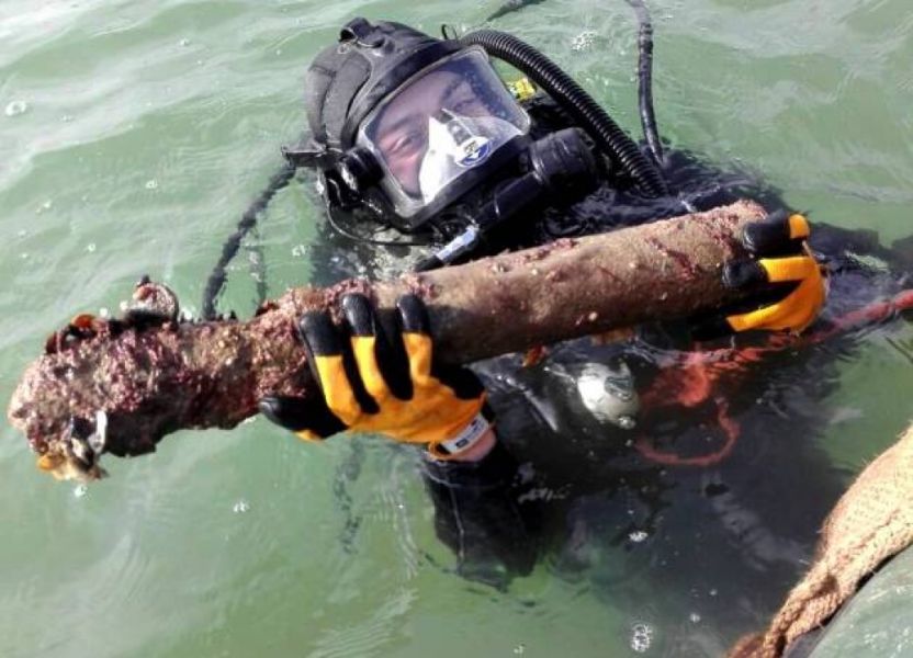 Одесские спасатели начали подъем боеприпасов с немецкого судна, затонувшего во время Второй мировой войны