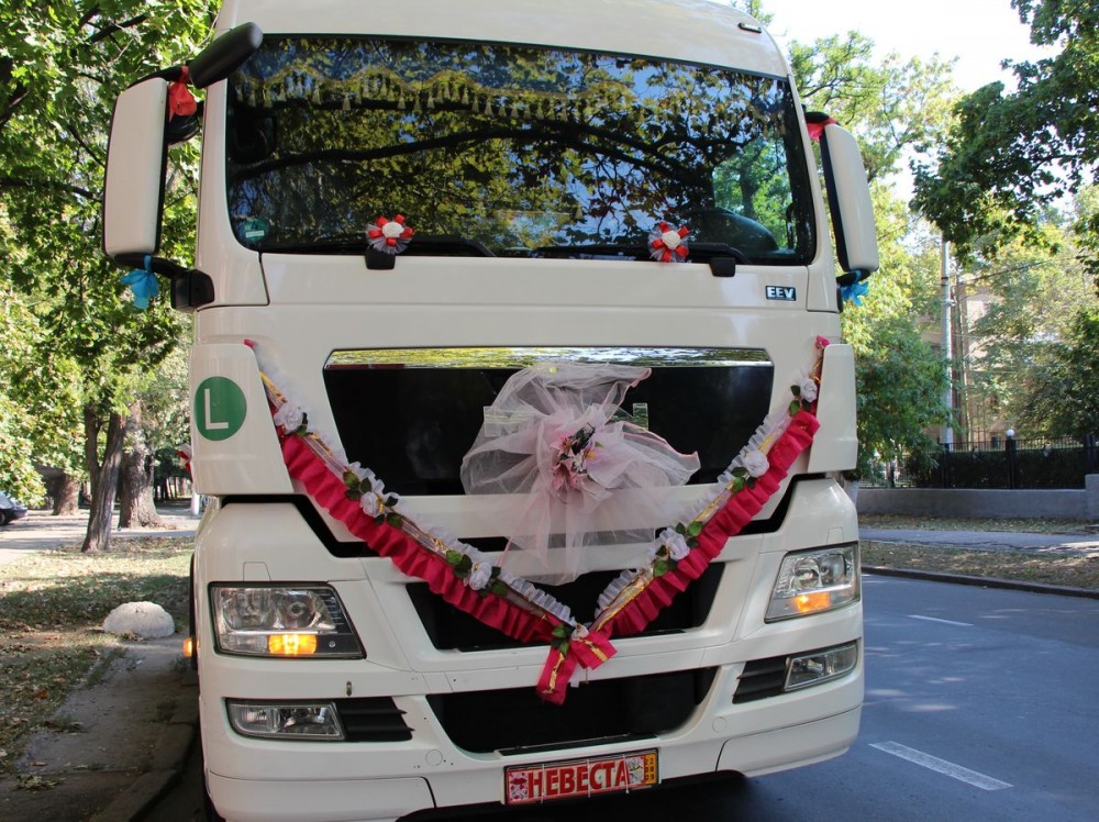 В субботу, 30 сентября, в Николаеве водители большегркзных машин оригинально отпраздновали свадьбу. По городу проезжали тоннажные авто «МАН» и «Рено», украшенные праздничными лентами и шарами.