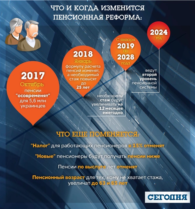 В частности, предусматривается повышение необходимого страхового стажа для выхода на пенсию до 25 лет в 2018 году и до 35 лет ежегодно до 2028 года. Документом предлагается пересмотр условий назначения пенсии по возрасту в 60 лет с 1 января 2018 года. Вместе с тем застрахованное лицо вправе самостоятельно определить свой пенсионный возраст.