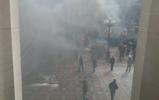 Под Радой проходит акция протеста активистов Свободы и Национального корпуса. Митингующие подожгли дымовые шашки и шины, передает РБК-Украина.