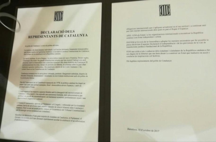 Подписи под документом поставили Пучдемон, его заместитель Ориол Жункерас, председатель парламента Каталонии Карме Форкадель и 72 депутата законодательного органа, образующие правящее большинство.