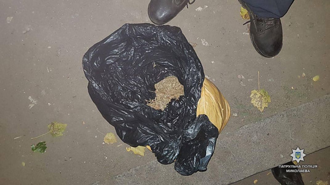 Во время патрулирования Заводского района Николаева полицейские обратили внимание на двух мужчин, которые постоянно оборачивались во время передвижения по улице. Один из них держал в руке большой пакет, который при появлении патрульных выпустил из рук и пытался оттолкнуть ногой.