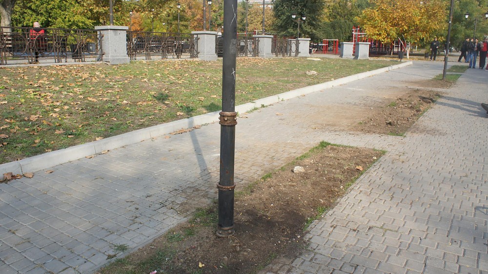 "Там не только деревья выкорчевывают, там в одном месте по центральной аллее плитку начали воровать. По плитке мы уже дали информацию на департамент (ЖКХ, – ред), а по деревьям сейчас посмотрим. Там же ни камер нет, ничего. У нас вот в начале лета украли флаг Евросоюза", – рассказал Береза.
