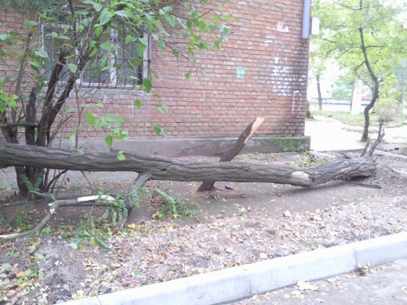 Только что упала огромная ветка во дворе по проспекту Центральному, хорошо что на тротуаре не было людей, стекла побились, — сообщает Ирина.