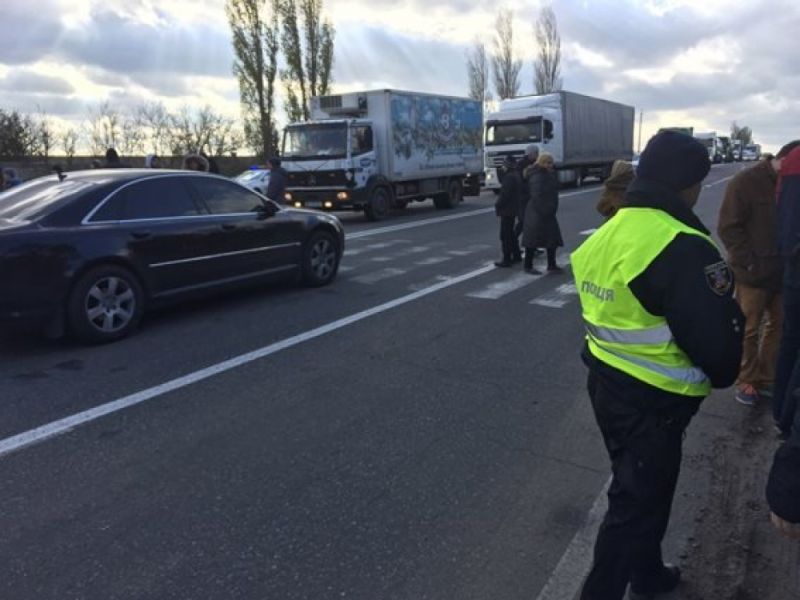 В среду, 1 ноября, возле с. Половинки на автодороге «Одесса-Николаев», собралось более 20 жителей Николаевского района, которые препятствуют автомобильному движению.