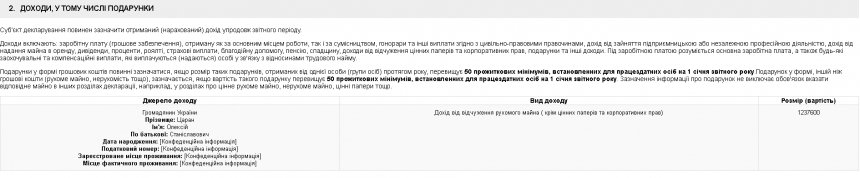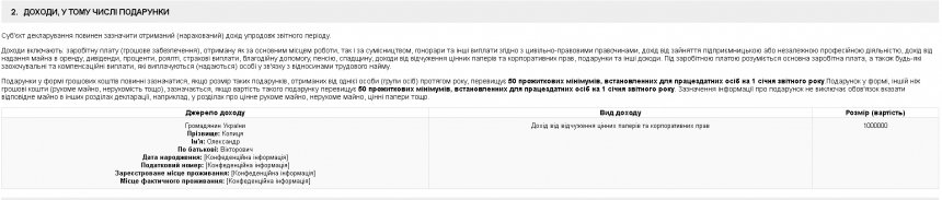 Итого за сентябрь Савченко получил доход от отчуждения ценных бумаг и корпоративных прав в размере более трех миллионов гривен.