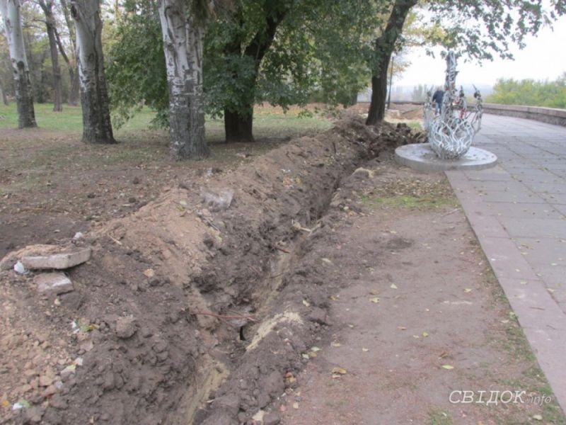 На Соборной площади, где сейчас прокладывают новое освещение, во время работ строители рыли траншею и наткнулись на остатки фундамента здания Магистрата (оно же гауптвахта).