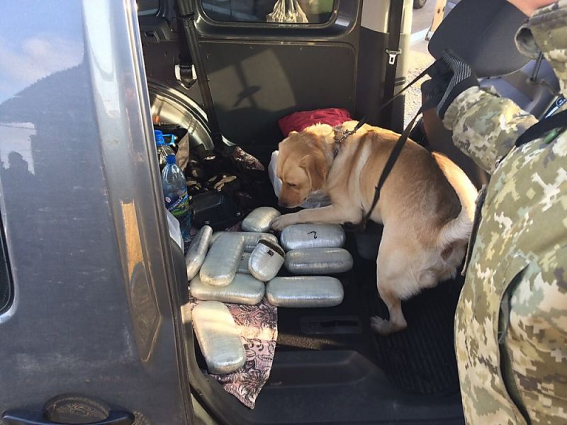 На автомобиле в Крым ехали два жителя Херсонщины. При осмотре служебная собака нашла в автомобиле под обшивкой двери 16 пакетов с марихуаной. На «черном рынке» за такое количество наркотиков злоумышленники могли бы получить около 1 миллиона гривен.