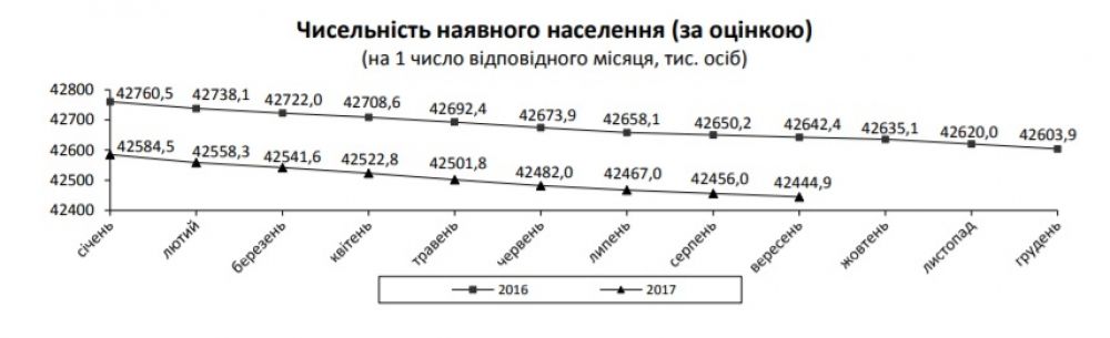 По состоянию на 1 сентября численность населения Украины составляла 42 млн. 434 тысячи человек.